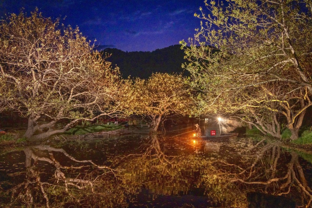 南投魚池鄉頭社「小江南」以優美的水社柳倒影、幽靜的河道風光聞名,因其如煙雨江南般朦朧迷人的景色,成為熱門的攝影秘境。特別是在這個季節的黎明初曉時分,搭配岸邊的水社柳開花景色,及江中烏篷船,呈現出詩情畫意的田園水鄉風情。
